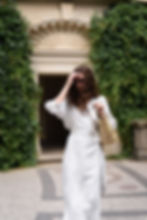 Modelka Julie ( smetanové šaty ) je vysoká 173 cm a nosí velikost S, oblečenou má naší velikost S/M.